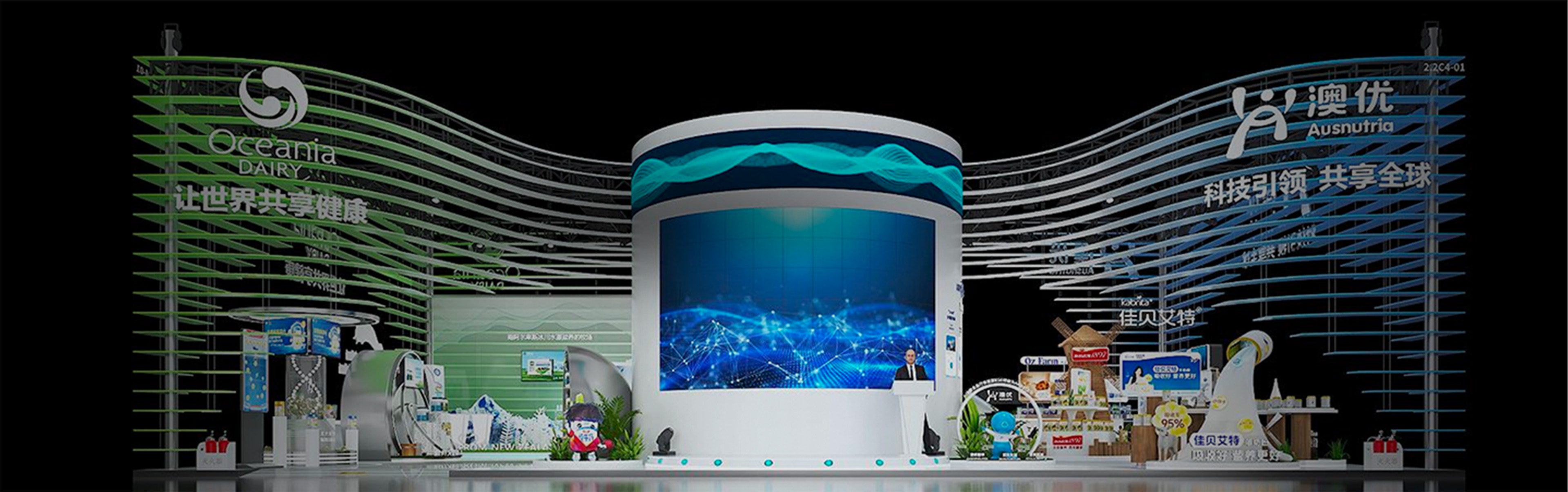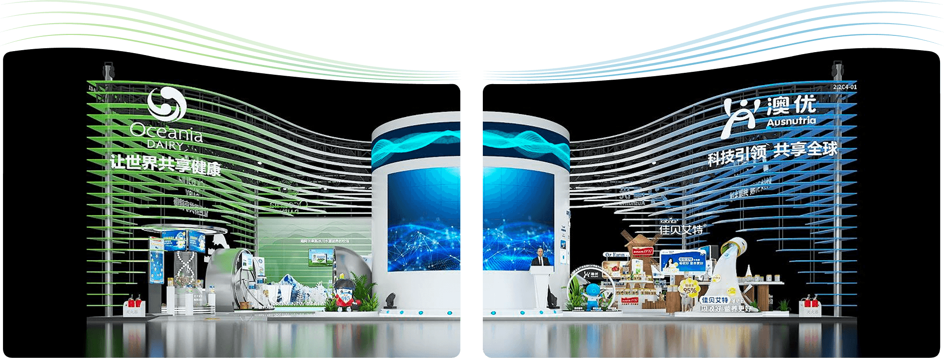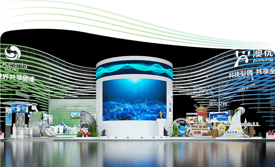 The pavilion design, which draws inspiration from "Twin Wings," symbolizes Yili Group's global footprint. The left wing represents Yili Oceania Dairy, embodying nature's gift and exceptional quality, while the right wing signifies Ausnutria Dairy, reflecting technological innovation and wisdom. Together, they showcase Yili's international perspective and strategic layout, driving shared progress for the global dairy industry.