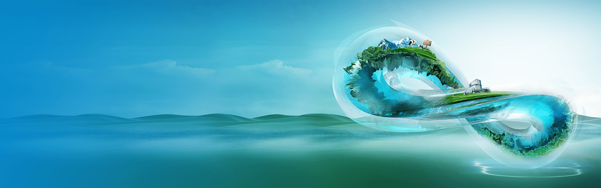 通过清新的绿色和波浪元素,营造自然清新的呼吸感与新西兰大洋洲乳业基地的绿色原生场景。创新采用新型环保材质,打造了灵动之境减碳展台。