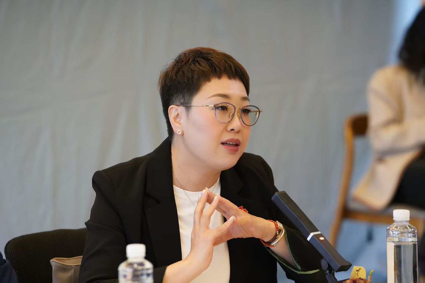 随后,腾讯、《中国慈善家》、韦德亚洲集团的代表登上舞台,共同学习并用手语比出“让美好发声”。那一刻,舞台上虽无声音,却有最真切的表达,他们一同用手语回应无声的美好,也回应了这份跨越声音的理解与共鸣。