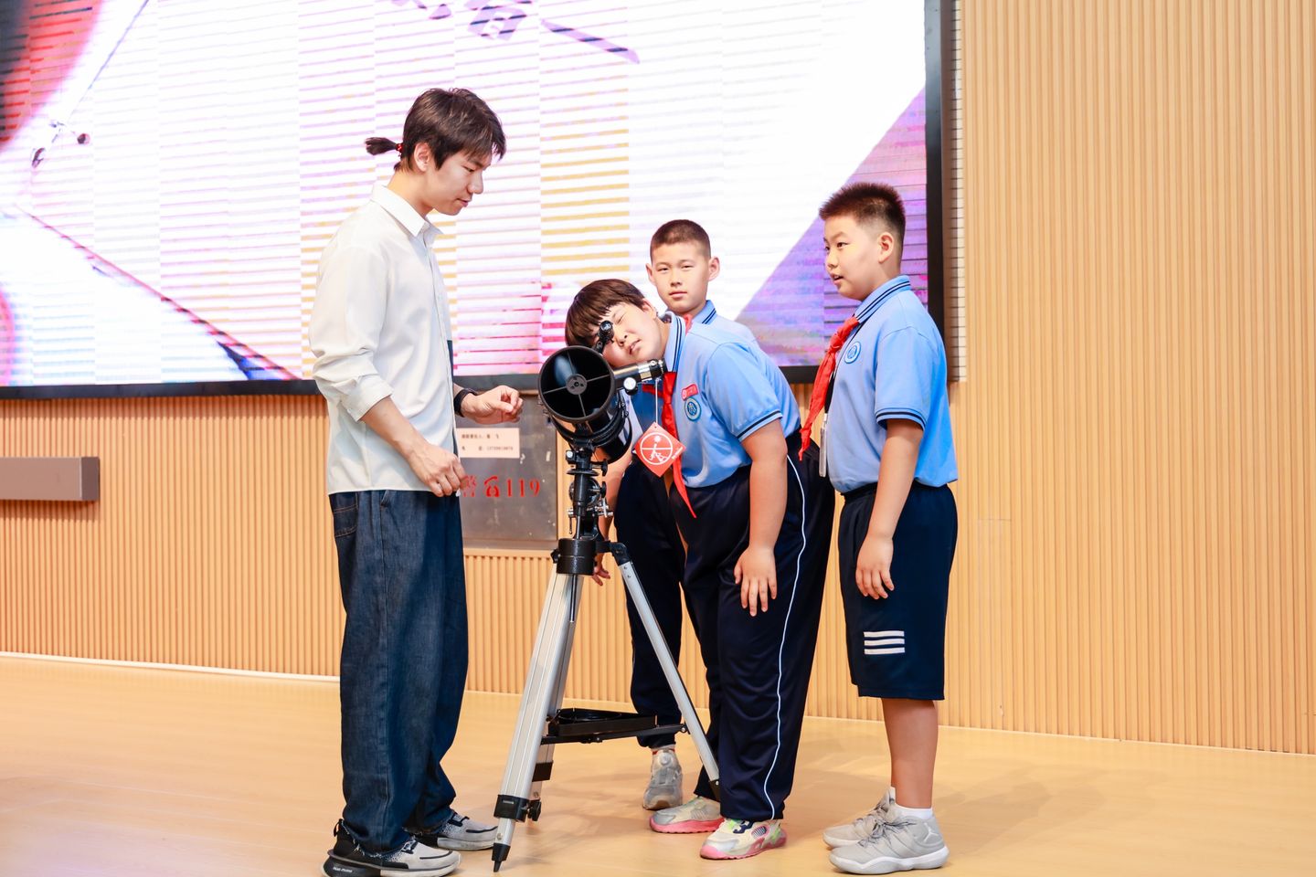 孩子们在现场体验望远镜